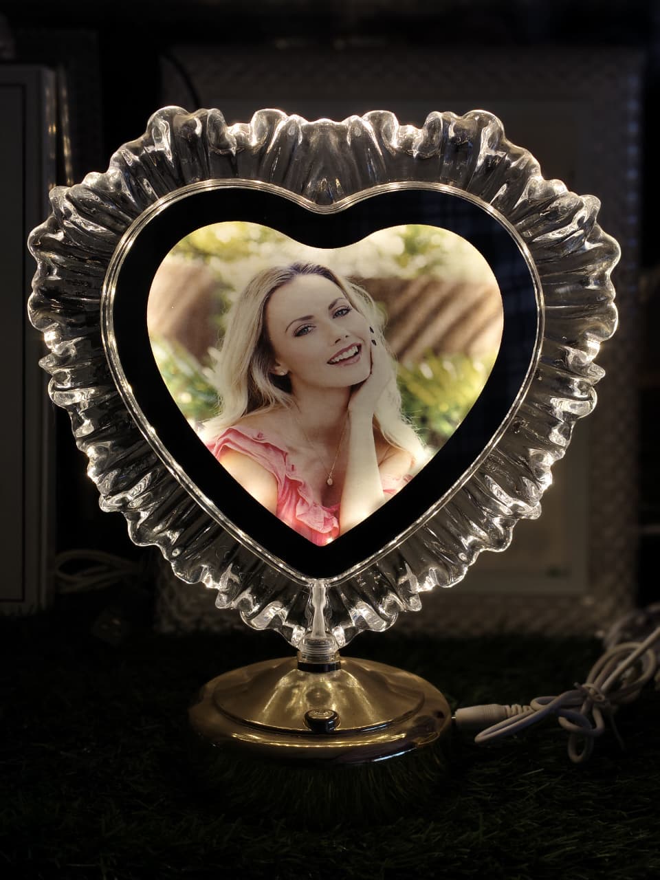 Heart photo frame with touch panel LED lights. we can customize your photograph in 10 min.